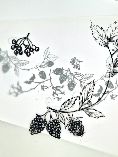 Her designs invariably start as a photograph taken on a walk before being manipulated digitally into the designs you see before you.